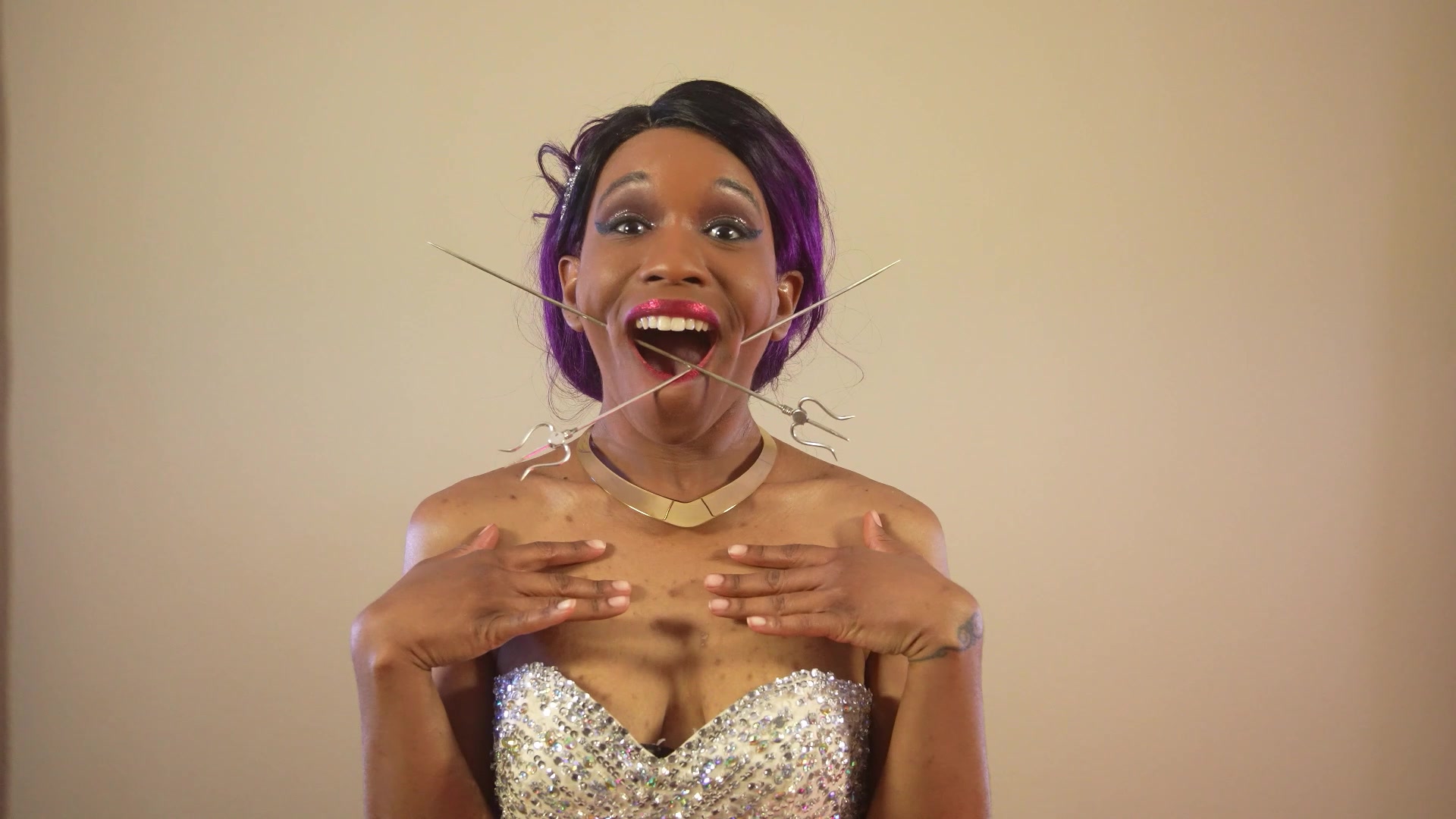 For Sanctuary Studios LAX's Club Anarchy alone she has performed: burlesque, mild to extreme BDSM, lip sewing, play piercing, breast nailing, breast skewering, flesh peeling, scarification, autosarcophagy, rope suspension, barbed wire bat beatings, magic, and much much more.